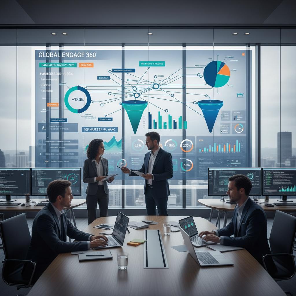 Specjalista marketingowy analizuje dane z kampanii interaktywnej na nowoczesnym dashboardzie.